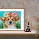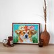 This is a oil painting with cute dog will be an original gift for pet lovers. The dog illustration will be an original wall art for your home. The funny animal art is bright colors, vibrant emotions, good mood. In a word, all that is so desirable to give a loved one. This pet portrait will suit any nursery. The art painting of funny dog will please the owner every day.