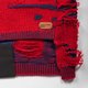 **双重组织针法,搭配撞色效果,并透过手工修剪流苏,制造破坏纹理的效果,每件细节皆为手工剪裁,独一无二。**