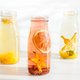 小草作以常温烘干专利技术,将水果作物制成优质果干原片,不因高温或低温干燥而破坏营养成分;我们以果干原片为创作基底,调和混搭花卉和香草,创造各具特色的台湾果干水。