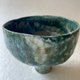 这件茶碗作品使用二种颜色的陶土进行绞揉:白色、蓝绿色