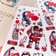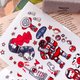 需自行裁切外型,輕柔地移除透明膜,此時轉印貼紙會連同透明膜一起被剝離起來,將其覆蓋在目標物上,用手(或是信用卡)將其推平後,慢慢地撕開透明膜即可。
