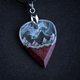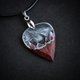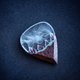 用黑色角树木和环氧树脂手工制作的吉他拨片,里面有山。