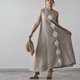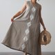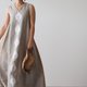 采用木版印刷、宽松伞状的亚麻棉质A字连身裙。