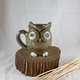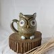 苔绿猫头鹰手工马克杯,厚重,保温,大容量500cc, 手拉胚,手工雕塑。