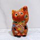 以鲜艳红色为主调,搭配黄色、白色与橙色细节,猫咪举起右手象征招财🌸