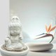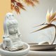除了观音小佛的造型外,搭配的小盘组设计更凸显出氛围感。观音佛像置于盘中央,周围点缀着精致的扩香石,让香氛可以均匀散发,弥漫整个空间。不仅如此,这也是一个展现个人品味和追求生活品质的居家香氛配件。