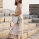 橘啡色短带,亮眼的拼色让袋子更抢眼,适合假日游玩使用。