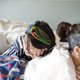 先一口气带至脖子(长发者可先绑好马尾再戴),再拉开发带如发箍一样箍到头顶后,整理后脑勺发流及前额头发即可