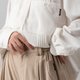前后裤管处皆有打褶设计可使其廓形呈现微锥状