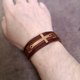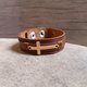 - 个人化玫瑰金十字架皮革手链,底部有励志圣经诗句。 由两层疯马皮和棕植鞣革制成,尺寸可调。