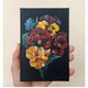 - Pansy oil painting on black canvas (canvas on cardboard 3 mm), original artwork, flowers painting, handmade art, hand-painted painting, botanical small picture 6 by 4 inch / 15 by 10 cm