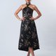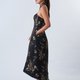 精美的花卉图案 ,优雅的露背领口完美地凸显了肩膀的曲线,而西式剪裁的A字裙型则为各种身形提供迷人贴合感的剪裁。