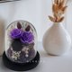 花材选用:日本永生玫瑰(深紫)、蓪草索拉花玫瑰(深紫/深紫红)、永生绣球花(深紫)、永生蜡菊(浅粉)、永生百万星(银)、法国小蜡梅(白)、永生小穗花(复古紫)、永生米香花(深紫)、永生重瓣小蜡菊(金)、永生卷丝草(深绿)、永生叶脉(金)、永生苔藓(深紫)