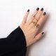 This ring features a butterfly that glistens with its scales as it flutters in the pale light of the moon.