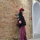以弹性毛质面料,扩张帽型垂坠度,南瓜蒂具有画龙点睛效果,也可随意调整方向造型。