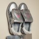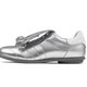 材質選用啞光金屬銀皮革,鞋底、內襯等同樣選擇銀灰色材質,保證了出品的完整感,