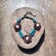 一年多前也有做过双排小珠设计的手链,这次以新的编织配件搭配成新款式。以砗磲圆珠为中心做了比较有存在感的编织件,搭配颜色鲜明的绿松石珠。
