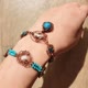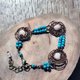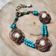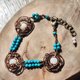 砗磲与绿松石手链,延长链尾端的装饰珠为紫锂辉石,线材为纯铜线仿旧处理,延长链与扣头为黄铜。