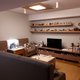 以压克力板制作的架构上,以天然的石材、沉木、层层叠砌