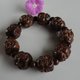 本件红砂沉香木手串含有黑色树脂,有一种素朴悠远的香,连绵不绝飘流在空气里,由于它的很坚实,丢到水中会沉到水底,它的形成也要上千年的时间,且双面精雕十八罗汉佛头,值得珍藏配戴!