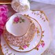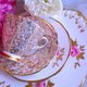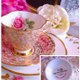 22k 金蕾丝花茶杯两件组, 搭配花茶杯内缘的粉红玫瑰