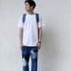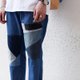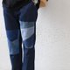 牛仔裤膝头位以不同深浅的牛仔布拼成,裤身备有深浅色选择。