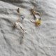 - 材料有天然石水晶。手工琉璃珠。棉珍珠。黄铜 两边不规则耳环