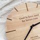 - 质感很好的实木制静音时钟 God is love and he loves you 我以永远的爱爱你, 因此我以慈爱吸引你-耶利米书 31:3 有附赠卡片上面有使用说明跟英文翻译