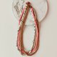 Spira串珠是属于短款的纸珠宝项链。它混合了甜美粉红色,浅棕灰色,棕色,及如碎小彩色大理石图案的中型管状珠子, 以多层次的设计组合而成。这些珠子用棕色棉绳编织打结,以纸珠勾作为装饰收尾, 具有时尚风格的视觉感。