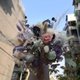 紫色及粉橘色永生玫瑰共四朵、各式太阳玫瑰、棉花及康乃馨,还有兔尾草、旱雪莲、卡斯比亚等等等