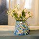 - 立體的花朵鑲嵌,藍白的底色加上金色的線條,有著復古嫻靜的美感。產品可用作花瓶 / 燭臺