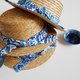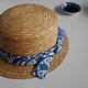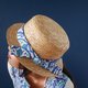 Boater style woven straw hat featuring a contrast cotton print fabric tie band and a little wide brim. Hat Size Circumference 54-56 cm. Diameter 29 cm. Brim 5 cm. High 12 cm. A perfect companion fitting with casual day outfit. Ideal for summer escapade.