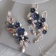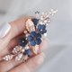 - Rose gold navy blue jewelry set, Wedding pearl earrings, Bridal dark crystal piece, Flower bride prom earring, Hairclip for short hair