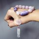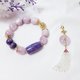 **1.图上紫龙晶主珠长约26.5mm、宽15.2mm,猫眼紫锂辉平安扣直径约20mm,流苏随意扣饰(平安扣+流苏)长约95mm,整体手围约16cm。**
