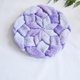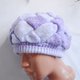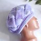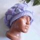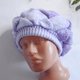 美丽时尚的贝雷帽,采用不同寻常的技术 intrelak 由渐变羊毛编织而成。颜色范围从柔和的淡紫色到充满活力的紫色。贝雷帽是手工编织的。