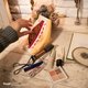 外侧布料有别于以往的帆布,特别使用软绵绵的毛呢毛料,内里则使用不织布,