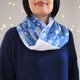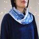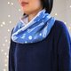 以北欧风格的 jacquard 提花织布精心织制,描绘出森林小屋与麋鹿图案,搭配抓毛绒布料制成的短款 Snood 围脖。