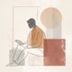 《午后阅读的剪影》以极简线条勾勒出一位静静看书的男子,搭配几何色块与柔和大地色系,像把阅读时的专注与安然,凝结成一个安静的画面。暖赭色上衣、米灰裤装与圆形、方形色块交叠,营造出介于现代都会与侘寂风之间的简约氛围,没有多余细节,只有阅读带来的那一小块宁静时光。