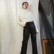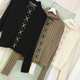 正反穿皮绳饰长臂高领毛衣-黑、白、卡其