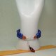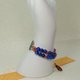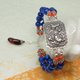 天然蓝晶石 红珊瑚 双狮戏球锻敲银饰 双排手链