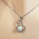 约7.8mm的akoya珍珠表面泛着淡淡的白透樱花粉色的天然光芒,纱织小姐为其配以 S5925银为主体表层14K注金的满镶晶体锆石的葫芦形配件。让akoya的天然光芒呈现出富有层次感的光彩,戴在胸前更强调清秀美好的锁骨轮廓,也表现出职业女性的干练与精致。