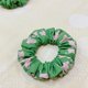 在草地上排排站的小猪们, 制成细版的发束, 正好一面有小猪、一面是素色的绿底, 围成圈的小猪们看起来更加讨喜。 尺寸:松紧实际长度约15-17cm(实际绑起来可以绕两圈) 材质: 日本进口棉布 日本制粗圆松紧带