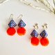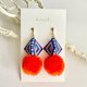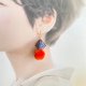 - Thread pompom pierced Clip-On[Navy x Orange x Emerald] The pattern is created by carefully winding the threads one by one around the cube. It is a warm work that uses a lot of threads.