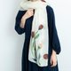 - 秋冬之际,弥漫着萧瑟之情;一席挂着生机盎然植物果实的白底围巾,披挂身上,为秋冬的寒意,增添了一片希望。