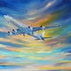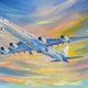 ✩ This artwork is one of a kind painting. ✩ Size 35 by 45 cm (14 by 18 inches). ✩ Materials: oil paints, stretched canvas, paintbrush. ✩ Delivery: quality wrapped and shipped. Come this tracking. ✩ Ready to hang on the wall. The sides are painted. 100% original airplane painting by Kristina Nikolaenko. "Airplane in the clouds". Original skyscape painting - painted on stretched canvas.