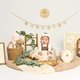 ◖内容物:花花挂旗、四月木牌、大小兔兔玩偶 (大小两种颜色随机)、木梯摆设、装饰布幔、编织藤篮、大地色圆地垫、