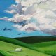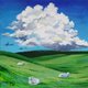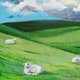 原始绘画托斯卡纳风景绵羊场绿色山丘多云的天空墙壁艺术