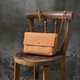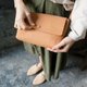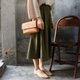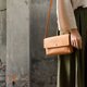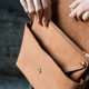 - 大小适中的皮制包包,有一个内袋、 长夹、手机、化妆包都可以放进去的大小