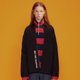 - 柔软斜纹的硬挺衬衫式外套,前短后长宽松剪裁,搭配金属拉链,时髦精致,后面绑带为整件设计亮点,前下摆局部标语印花,增加了整体与众不同的设计细节。