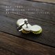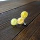 三个小丝线轴,颜色分别为黄、乳黄、橙和米色,沿着耳朵的线条并排放置。由于使用了不同的颜色组合,该设计非常引人注目。